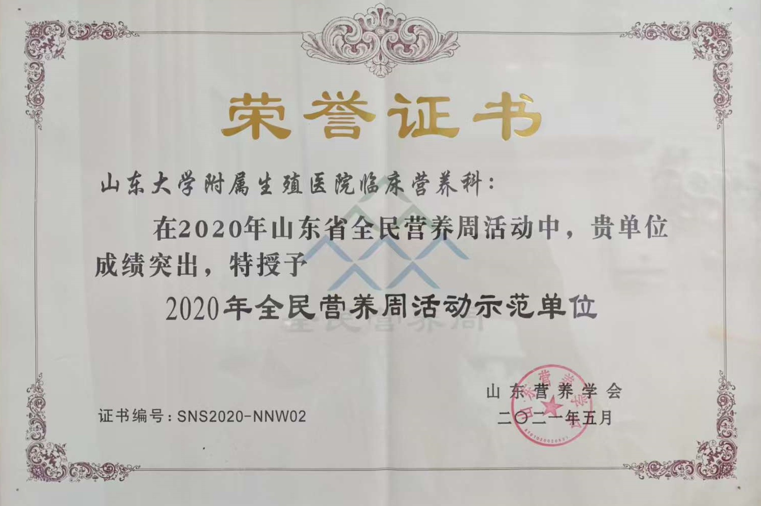 2021年获“全民营养周活动示范单位”
