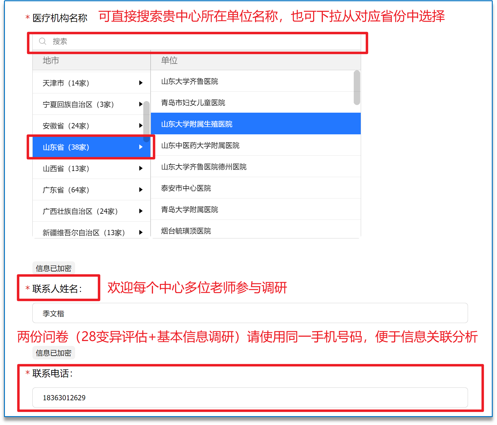 3、欢迎每个中心多位专家参与调研(不超过5位),请每位专家填写同一手机号码作为唯一标识,以便基本信息和变异分析问卷相关联;