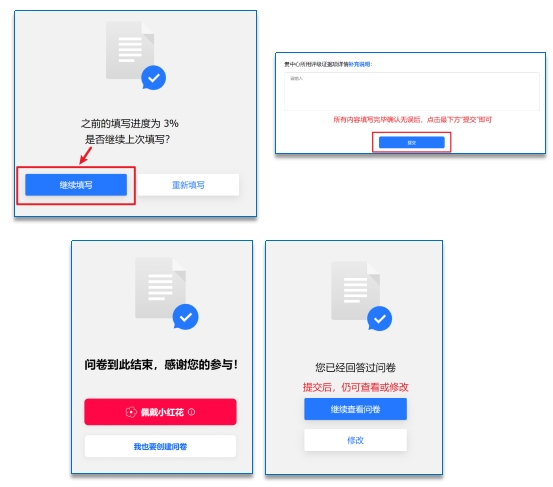 2、支持电脑和手机端操作,点击问卷链接,微信扫码登录后即可填写,已填内容将自动保存,填写完毕确认所有信息无误后点击“提交”;